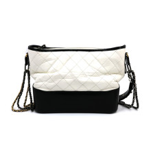 Composizione: tela check di colore beige e finiture in pelle vernis di colore nero